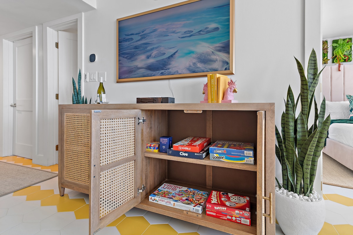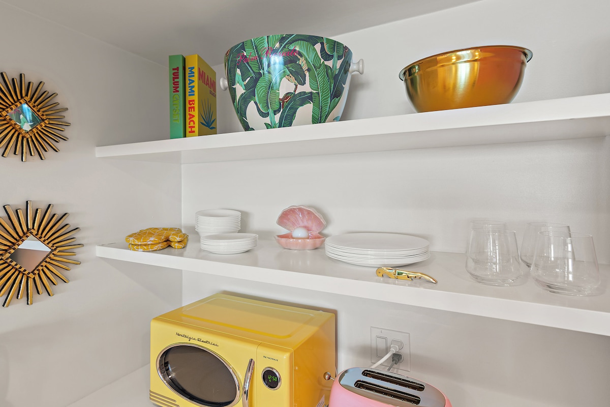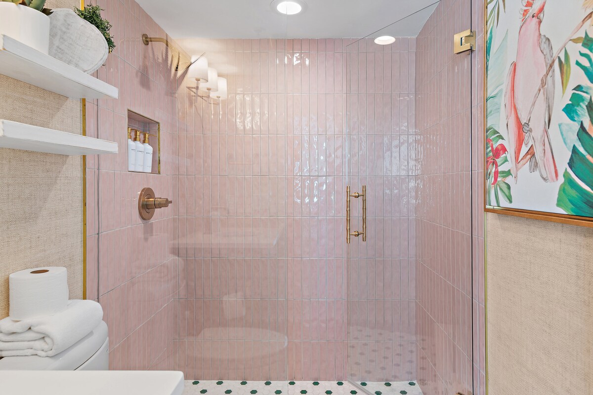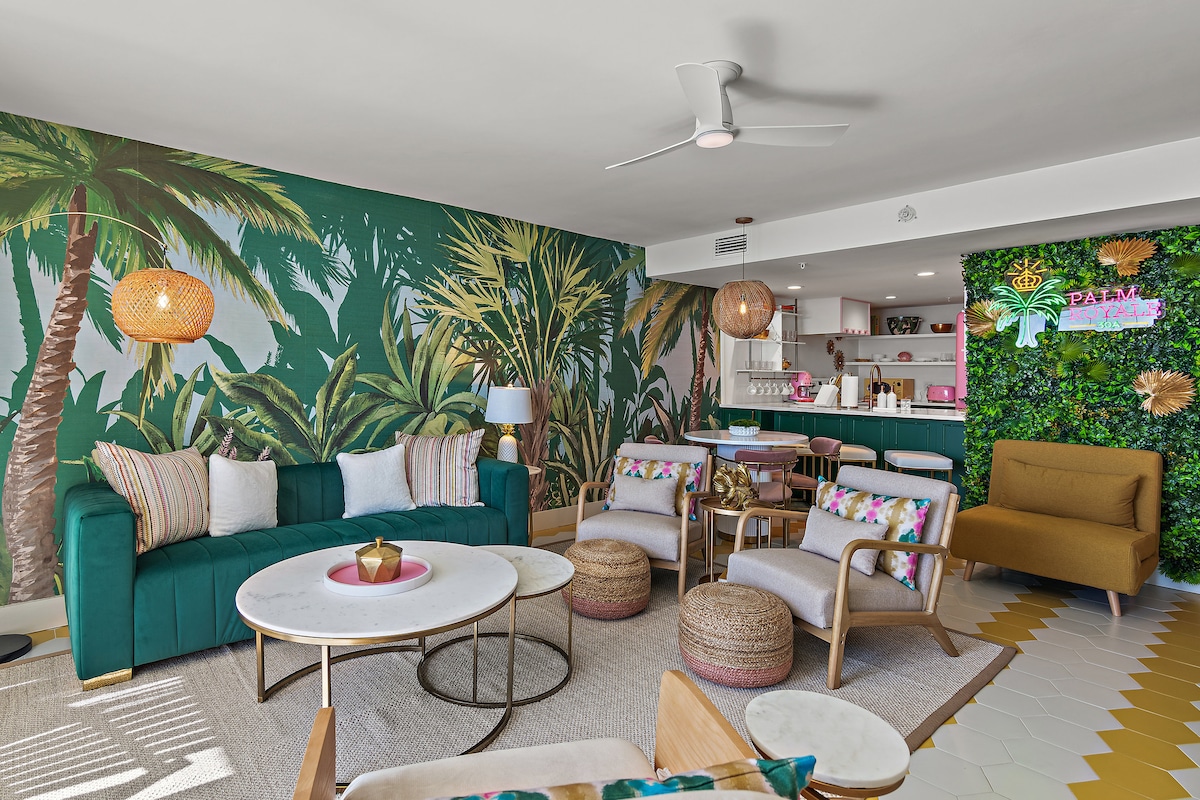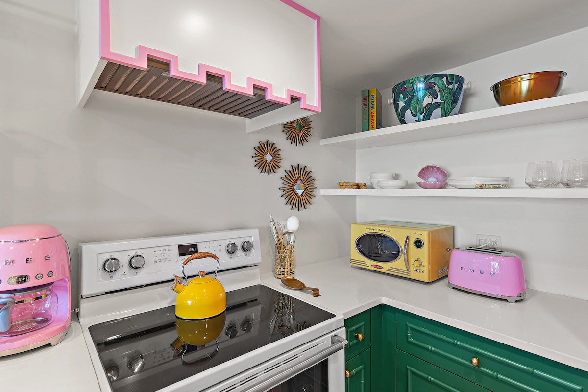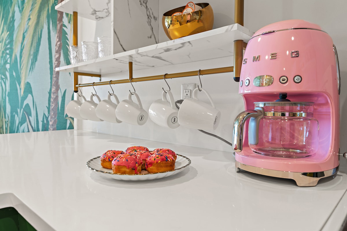 Inside, everything is brand new—from the designer furnishings and stylish lighting to the spa-inspired bathrooms and retro-modern kitchen with its iconic pink SMEG fridge. Every detail is thoughtfully curated for comfort and flair, giving you that Palm Royale “wow” moment the second you walk in.
