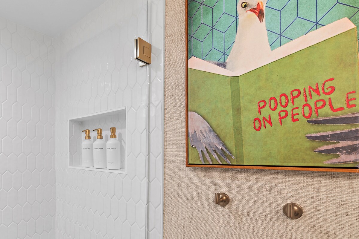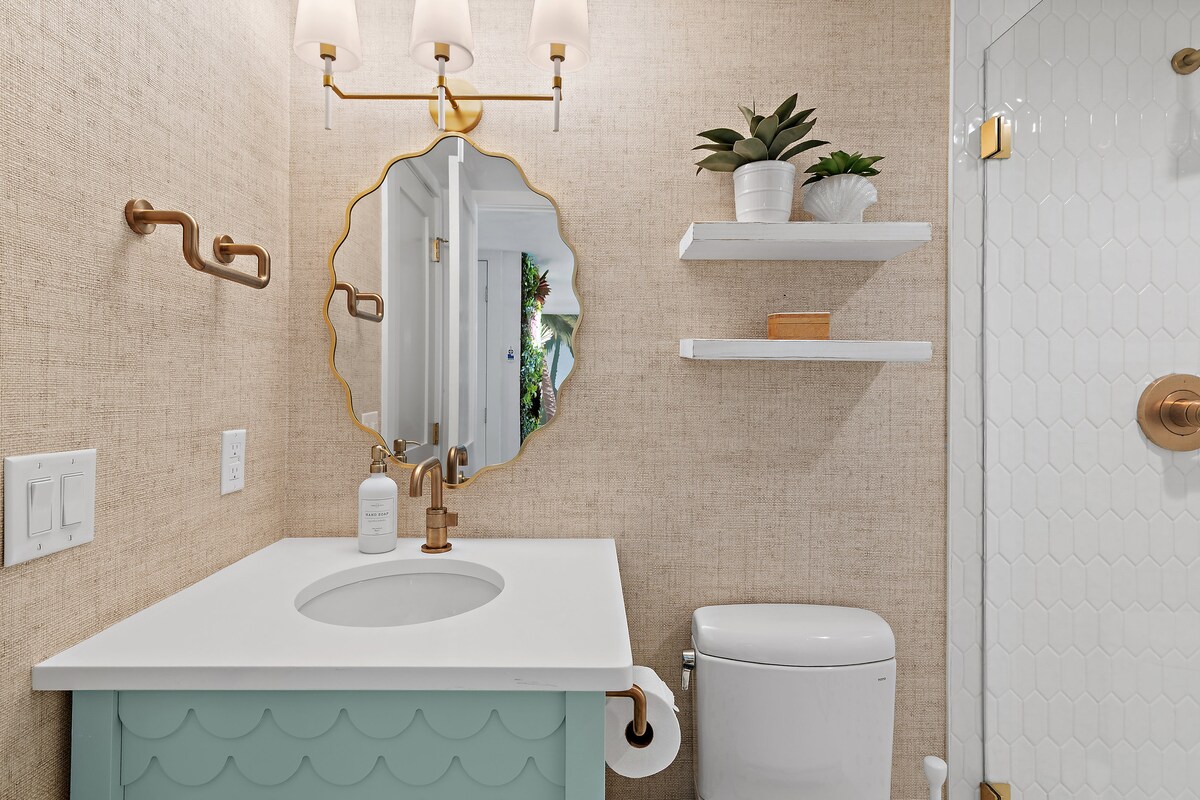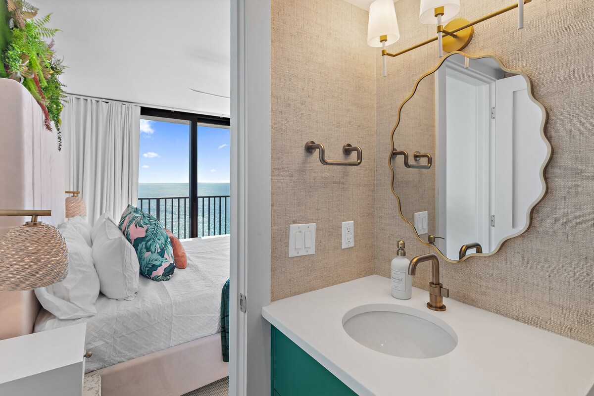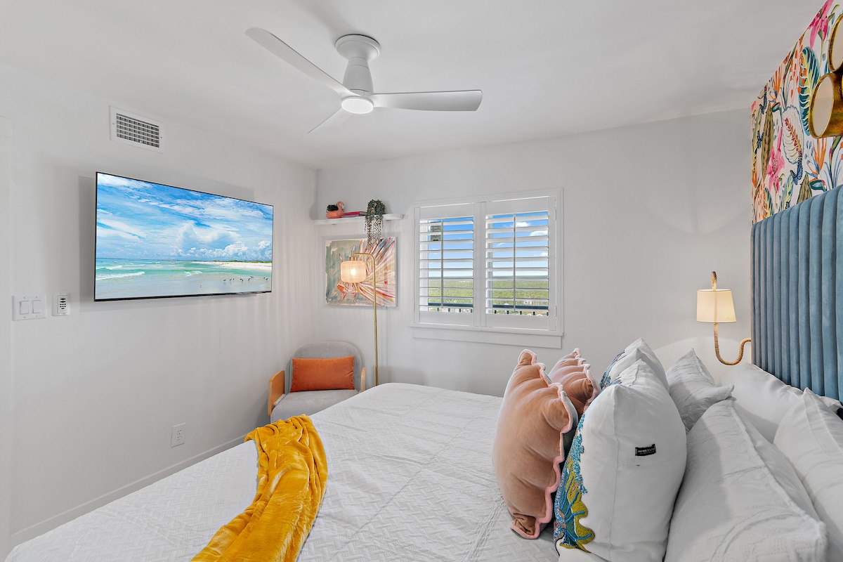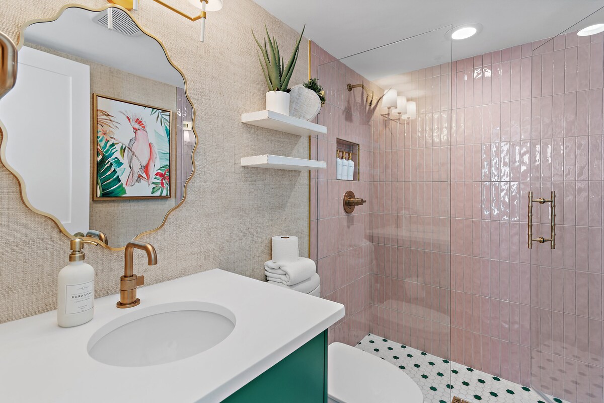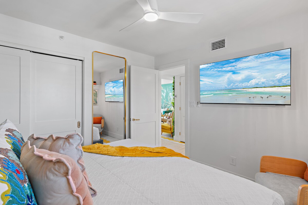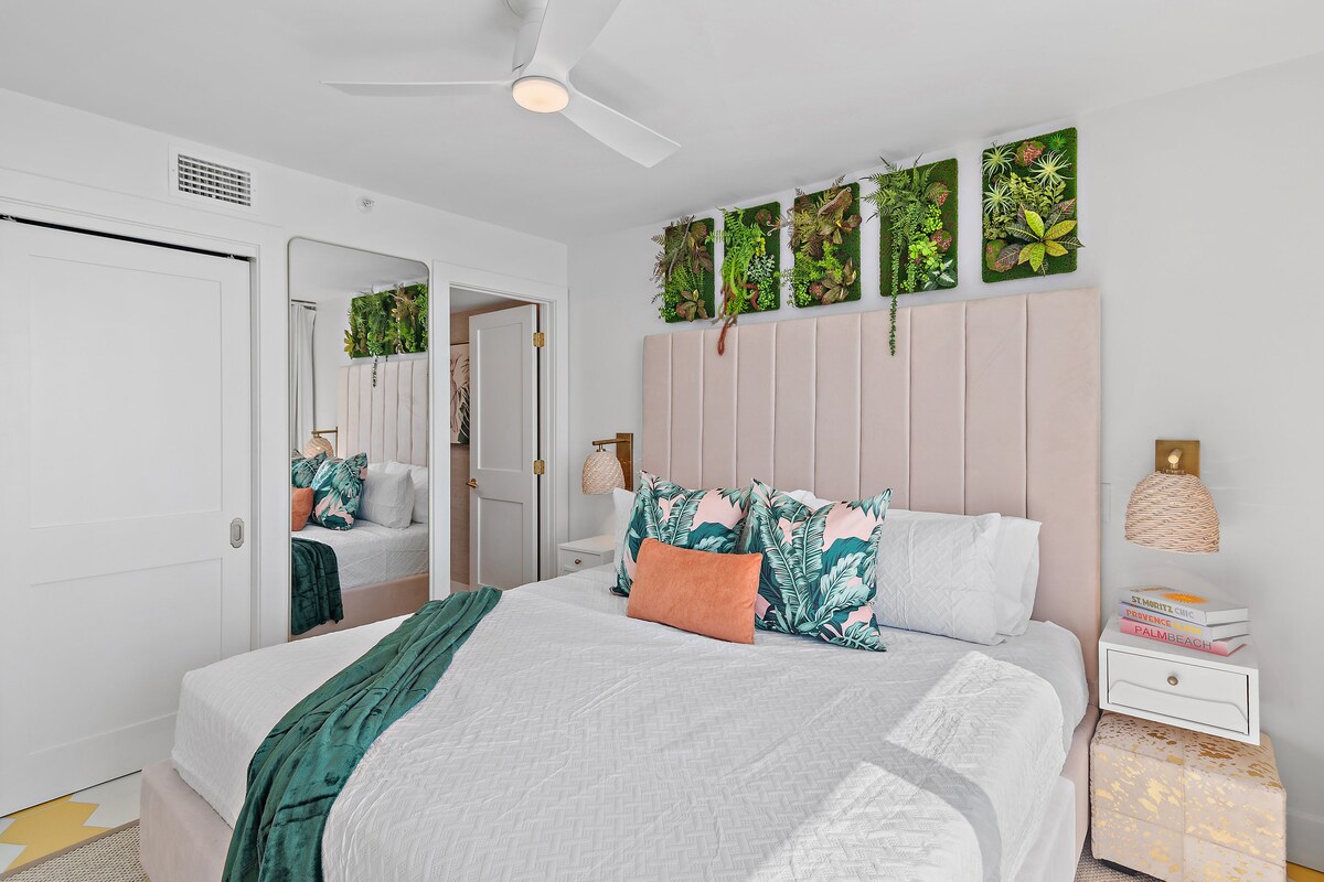 Inside, everything is brand new—from the designer furnishings and stylish lighting to the spa-inspired bathrooms and retro-modern kitchen with its iconic pink SMEG fridge. Every detail is thoughtfully curated for comfort and flair, giving you that Palm Royale “wow” moment the second you walk in.