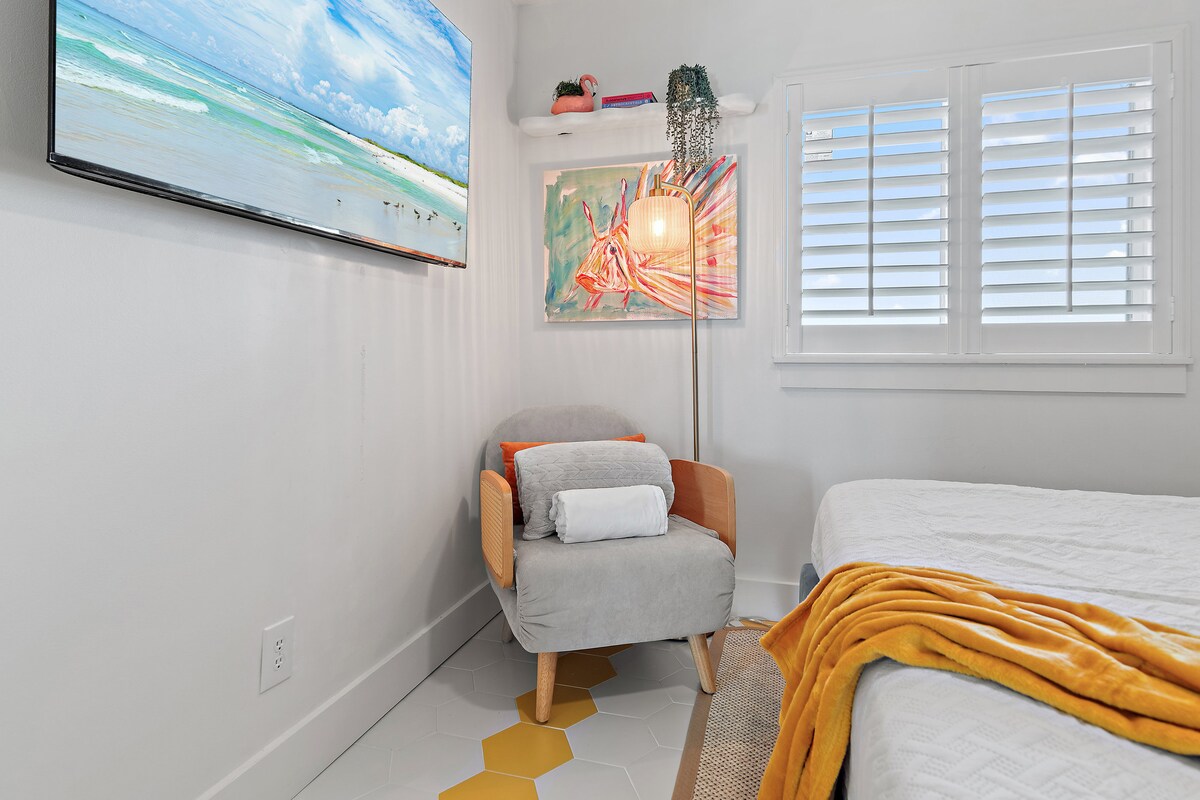 Guest Bedroom: King bed + sleeper chair (folds out into a twin)